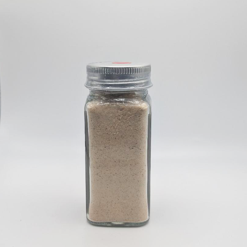Packaging: Vol. 4 oz glass jar with shaker and cap.