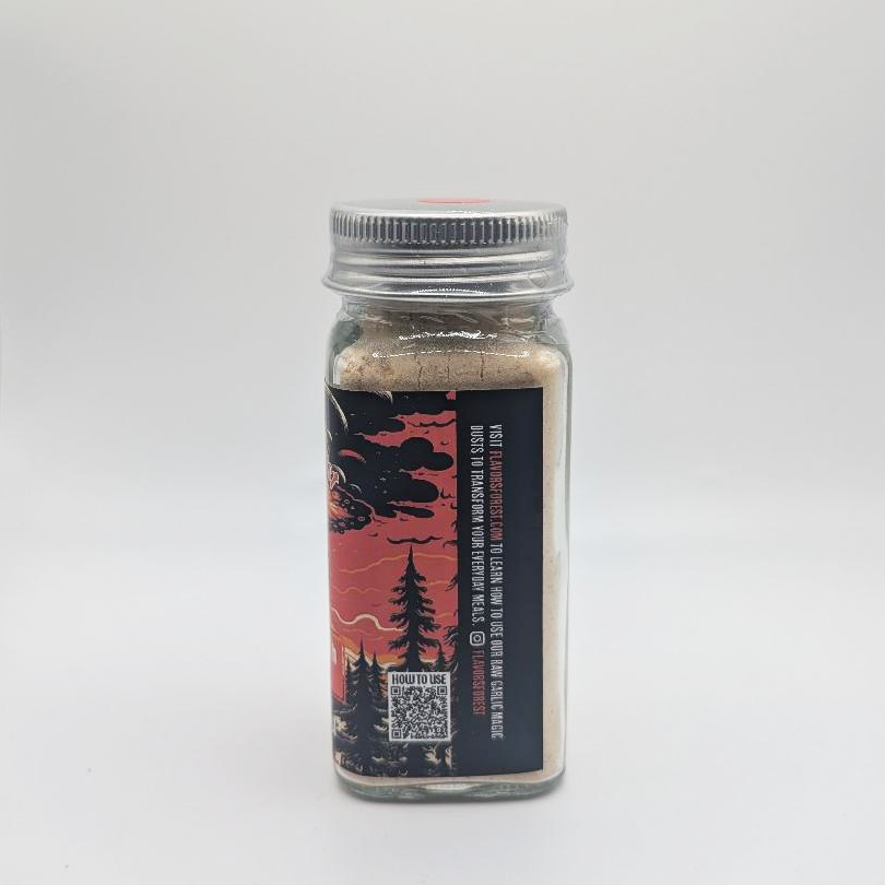 Spicy Raw Garlic Magic Dust: One taste and you’ll be a believer— Our Spicy Raw (freeze-dried) Garlic Dust is just like its non-spicy sibling, but with a kick. It’s a flavor booster that’s truly one-of-a-kind. Cook with it if you must, but the real magic happens when you keep it raw, just like Bigfoot tossing it into the mix. Get ready for a taste bud adventure that’s a bit spicy and a whole lot extraordinary.