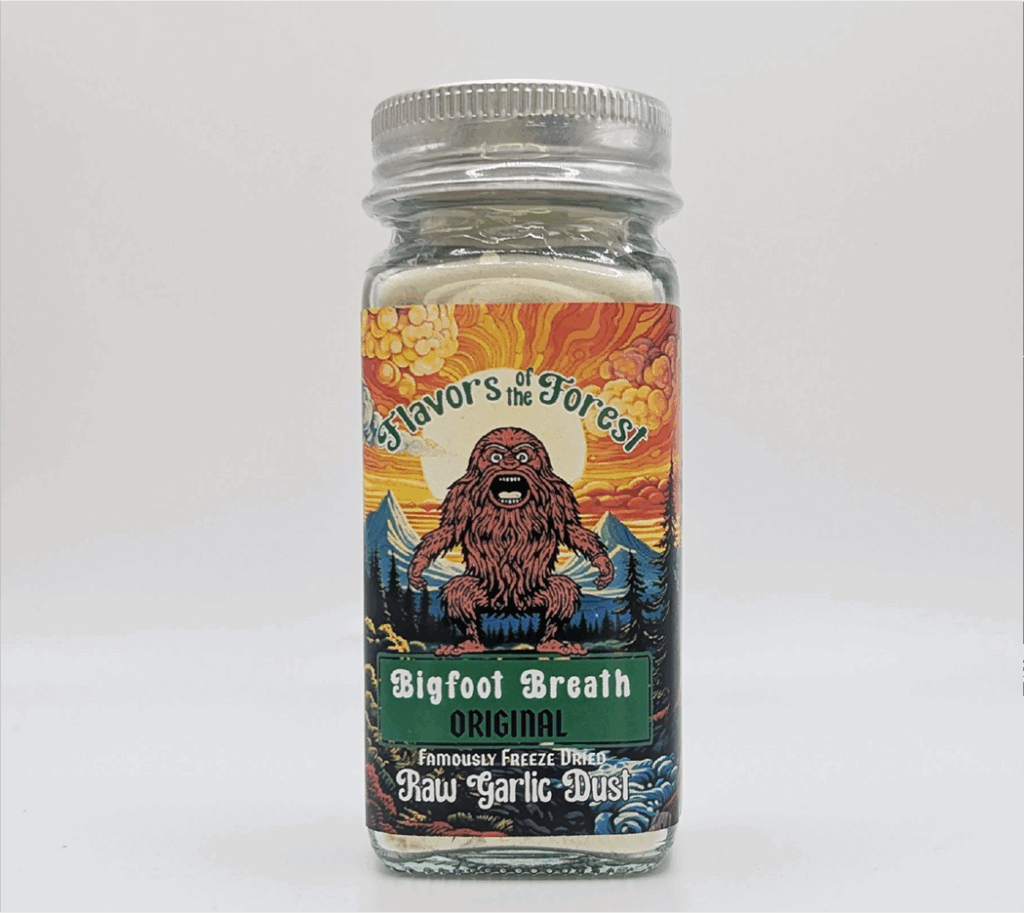 That’s what a single jar of Flavors of the Forest Bigfoot Breath Raw Garlic Dust does. Freeze dried raw to keep every compound alive. It’s garlic in its most potent, crave-worthy form.